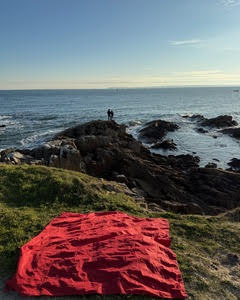 Arraché à sa fonction première, le rideau ne s’ouvre plus sur un spectacle : il devient le spectacle. Posé face à la mer, au sommet d’un relief ou devant le feu, il perturbe la lecture du réel, introduit une tension entre ce qui est montré et ce qui reste à imaginer. Chaque image fonctionne comme une scène figée, suspendue juste avant ou juste après l’événement.