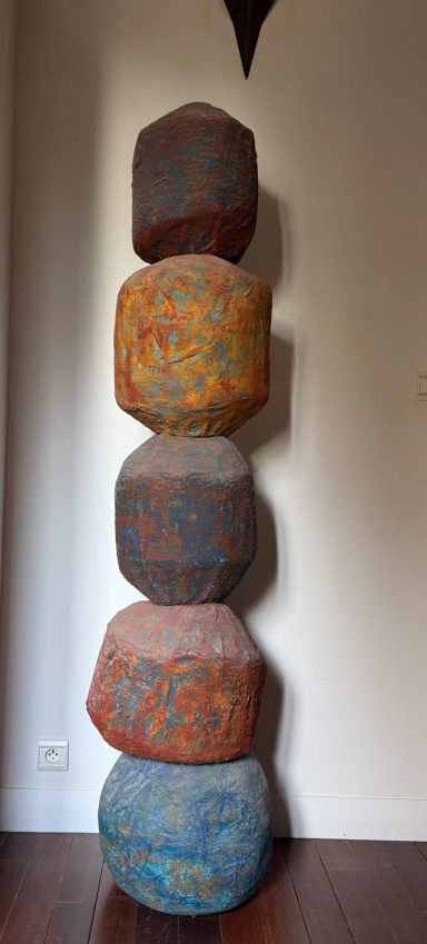 Ces sculptures naissent d’une approche plus intuitive et spontanée, où la matière légère permet une grande liberté de geste.