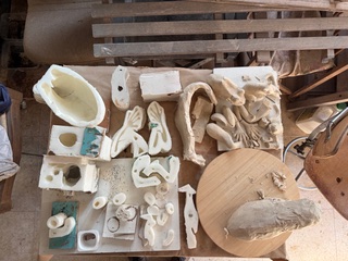 Ces sculptures naissent d’une approche plus intuitive et spontanée, où la matière légère permet une grande liberté de geste.