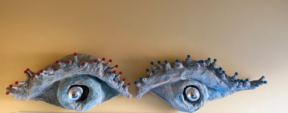 En parallèle de la sculpture animalière, l’artiste explore des formes inventées, pensées comme des objets de décoration intérieur réalisées en papier maché.