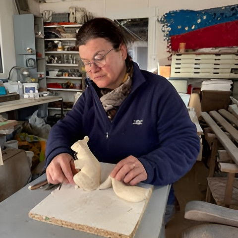 Chaque sculpture fait l’objet d’un long travail de finition. Le ponçage minutieux permet d’obtenir des surfaces lisses, tendues et vibrantes, où la lumière glisse et révèle les volumes avec douceur. Cette recherche de forme et de surface participe pleinement à l’identité plastique de mon travail, entre réalisme suggéré et stylisation.